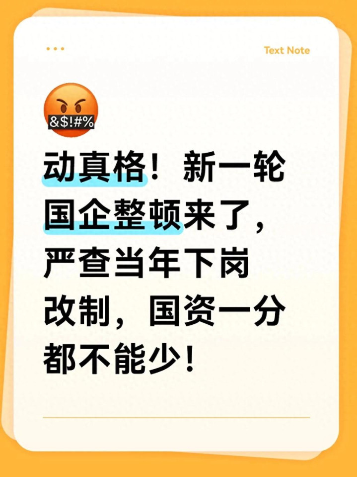 以前我也没办法,只能劝他们再等等,别着急。可最近不一样了,国家真要动手查当年的旧账了!新一轮国企整顿直接点名,就查当年职工下岗、企业改制那点事,重点盯国有资产流失,谁动了公家的钱、谁亏了老职工,这回一个都跑不掉!